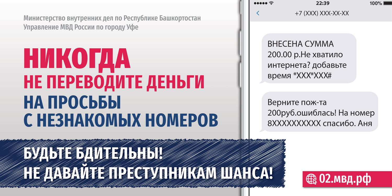 Согласно сведениям Отделения – Национального банка по Республике Башкортостан Уральского главного управления Центрального банка Российской Федерации по числу банковских карт, оформленных гражданами Российской Федерации, Республика Башкортостан занимает второе место в Приволжском федеральном округе и восьмое – в России. Все больше населения республики пользуется дистанционным банковским обслуживанием (интернет-банком и мобильным банком). При этом с ростом уровня цифровизации финансовых услуг наблюдается и большой рост фактов кибермошенничества в сфере финансовых услуг. В этой связи Министерством внутренних дел по Республике Башкортостан (далее – МВД по РБ) в адрес Министерства финансов Республики Башкортостан, координирующего работу по повышению финансовой грамотности населения Республики Башкортостан, направлено письмо от 23.11.2021 № 1/6941 (прилагается) о росте регистрируемых преступлений по фактам хищений денежных средств с банковских карт граждан, совершаемых дистанционно, с использованием информационно-коммуникационных технологий (далее – ИКТ). Наряду с этим, в рамках проведения профилактической и разъяснительной работы по предупреждению кибермошенничества в сфере финансовых услуг МВД по РБ направлены информационные материалы (листовки, видеоролики, баннеры) (размещены на Yandex-диске: https://disk.yandex.ru/a/4sbOxXEBc_2YxQ).