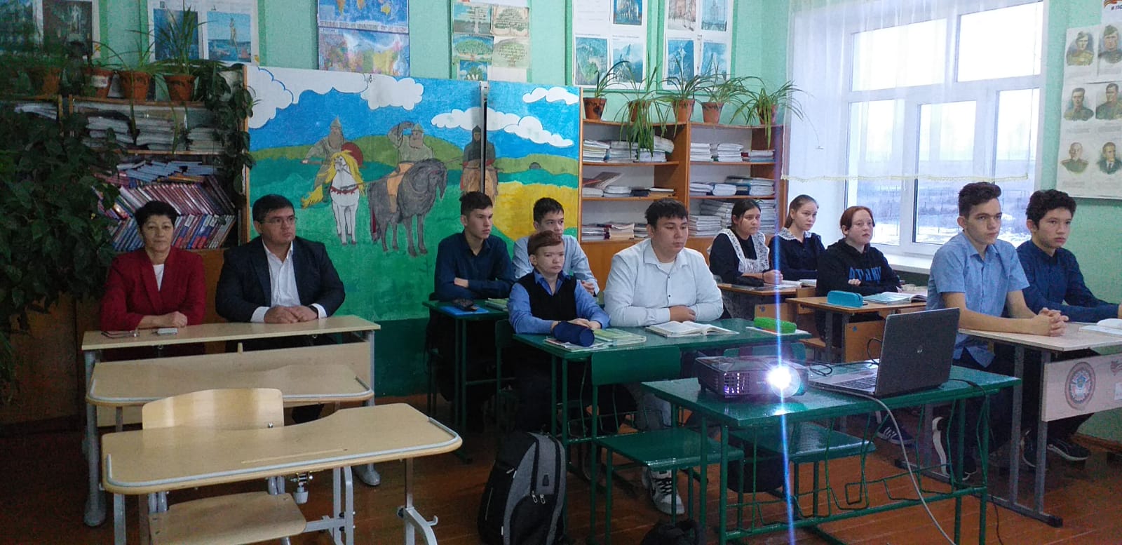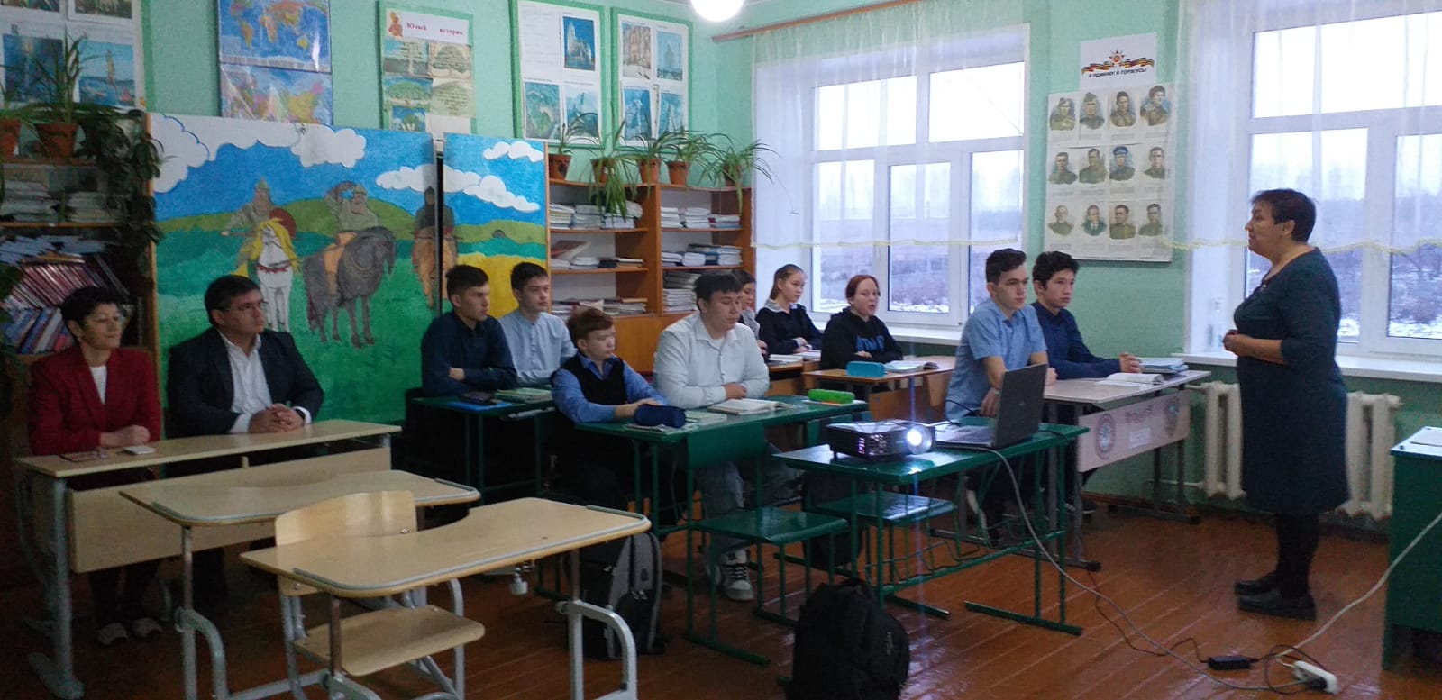 Каждый понедельник в нашей школе начинается с церемония поднятия государственного флага и исполнения гимна России, а также с уроков "Разговоры о важном". На этой неделе в поднятии флага принял участие глава администрации сельского поселения Старобаишевский сельсовет Хамиев Ильдус Ильфирович. После торжественной части он посетил урок "Разговоры о важном" в 9 классе.