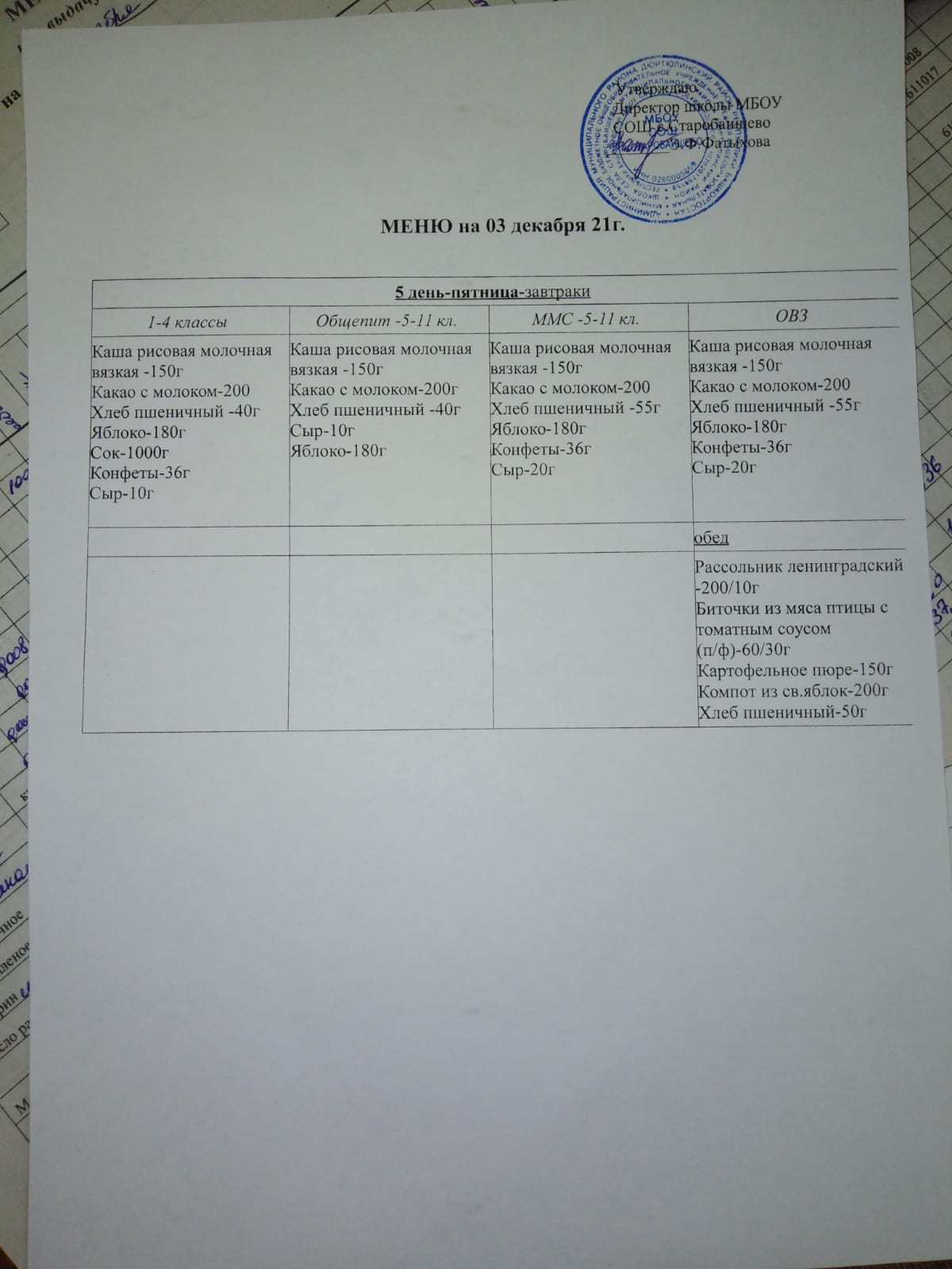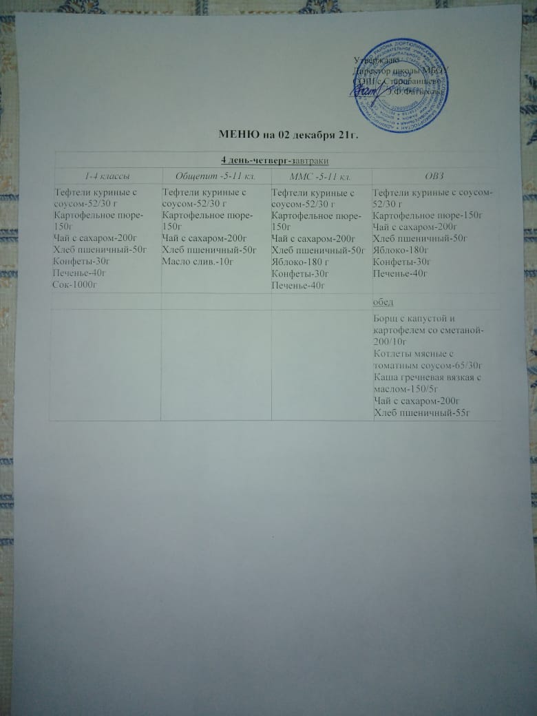 Пришкольный лагерь. Ежедневное меню