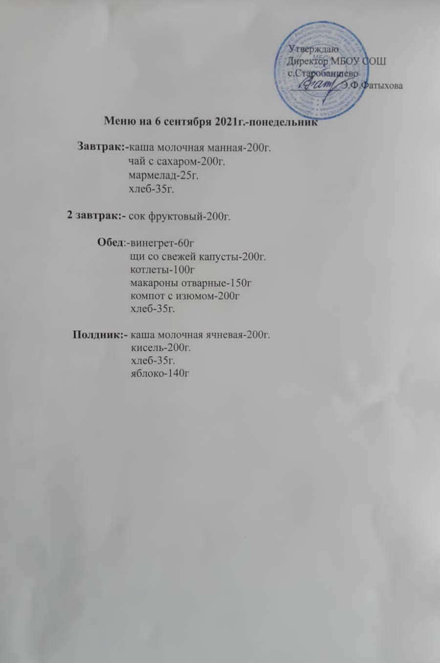 Пришкольный лагерь. Ежедневное меню