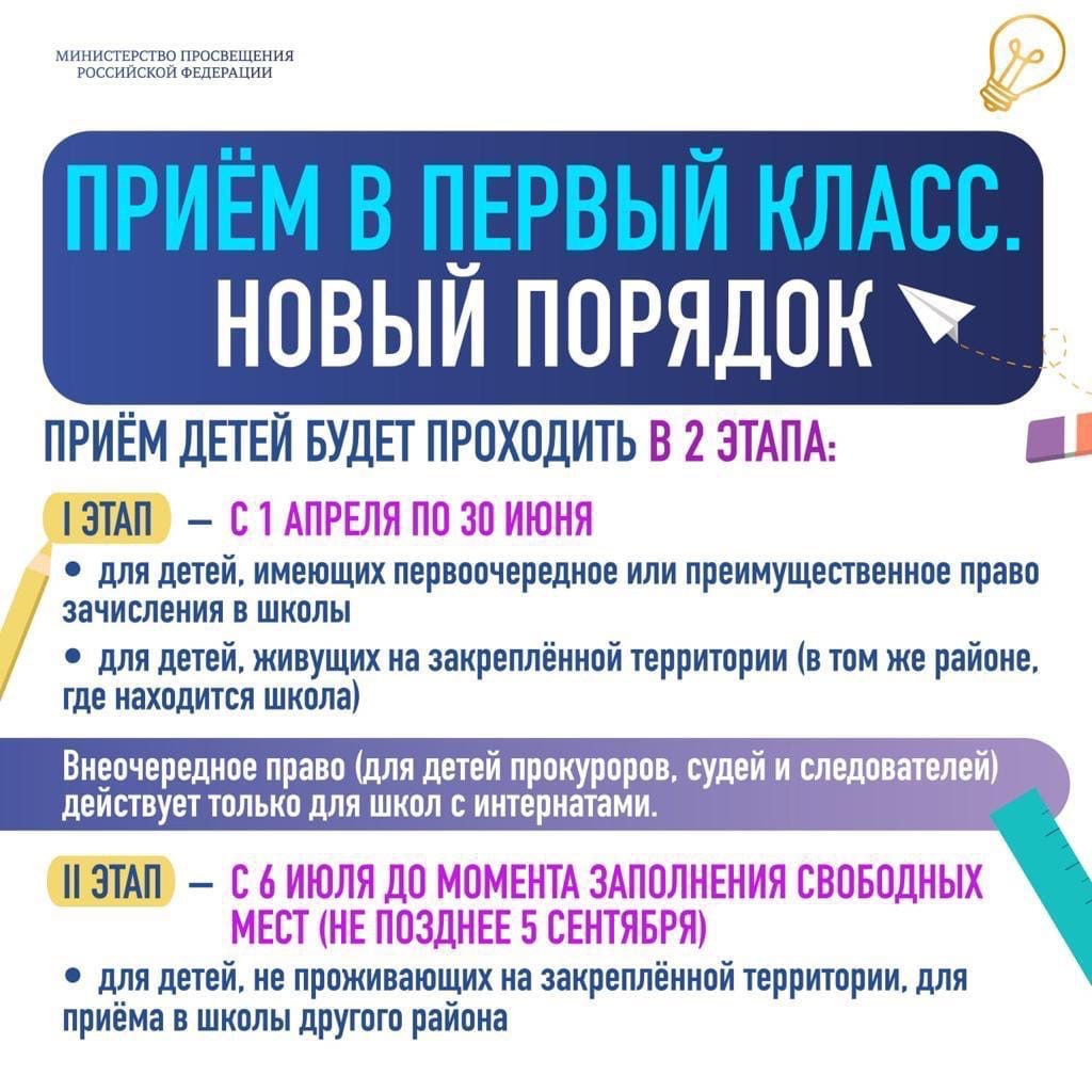 Прием в первый класс, новый порядок 2021 год