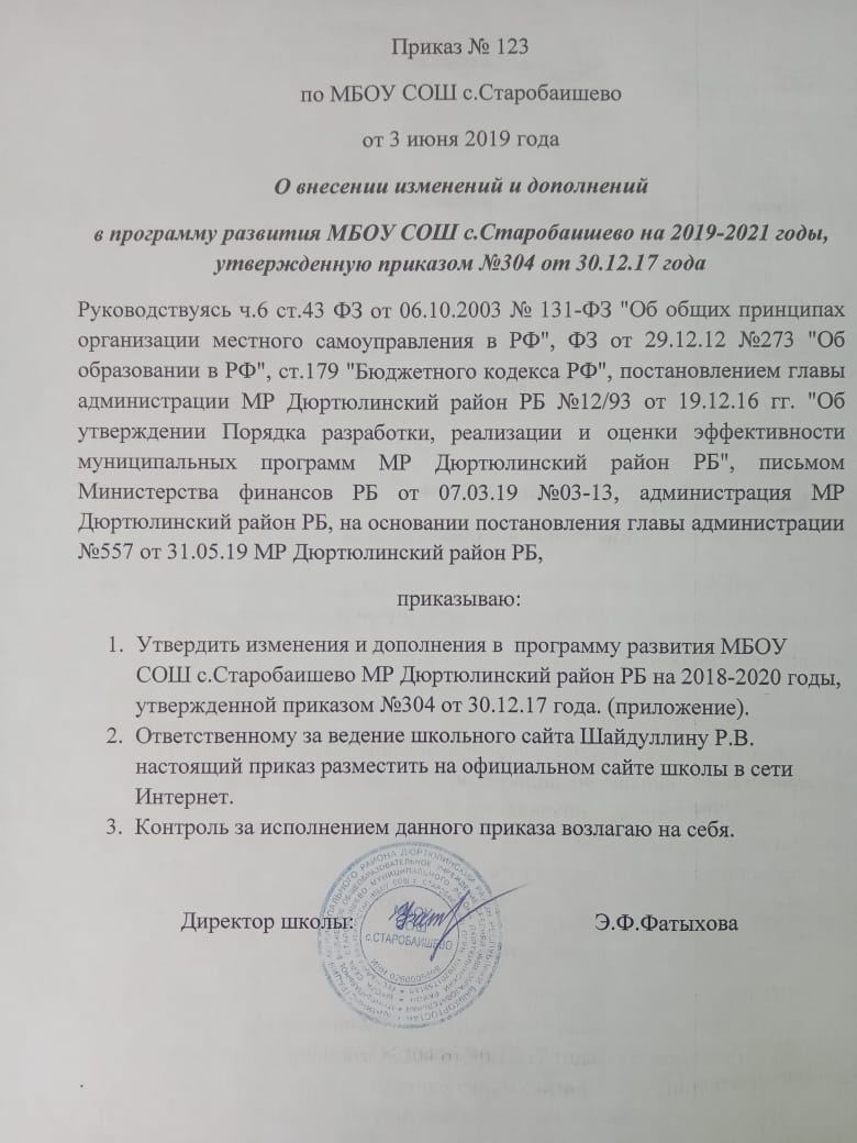 Приказ о внесений изменений и дополнений в программу развития